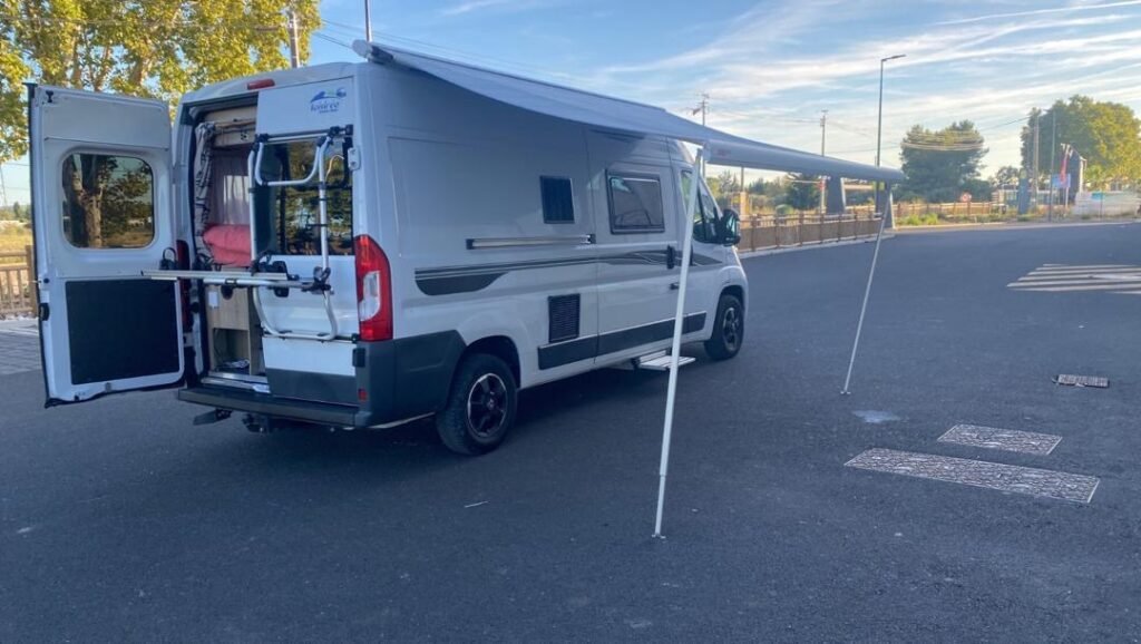 Nous laissons avec les chaines neige, la protection isotherme pare brise, les cales, signalétique pour porte vélo… Il est prêt à l’usage!